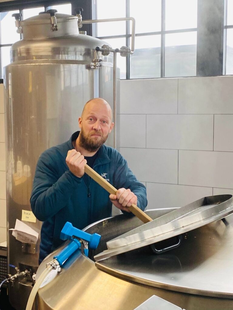 Vi brygger selv i 30 liters kedler i kælderen, i barejer og bryggeriingeniør Denis’ egendesignede udstyr. Når der er egenbryggede øl på fad annoncerer vi det på Facebook og Instagram. Hold godt øje, for vi har aldrig nok til mere end et par timer…